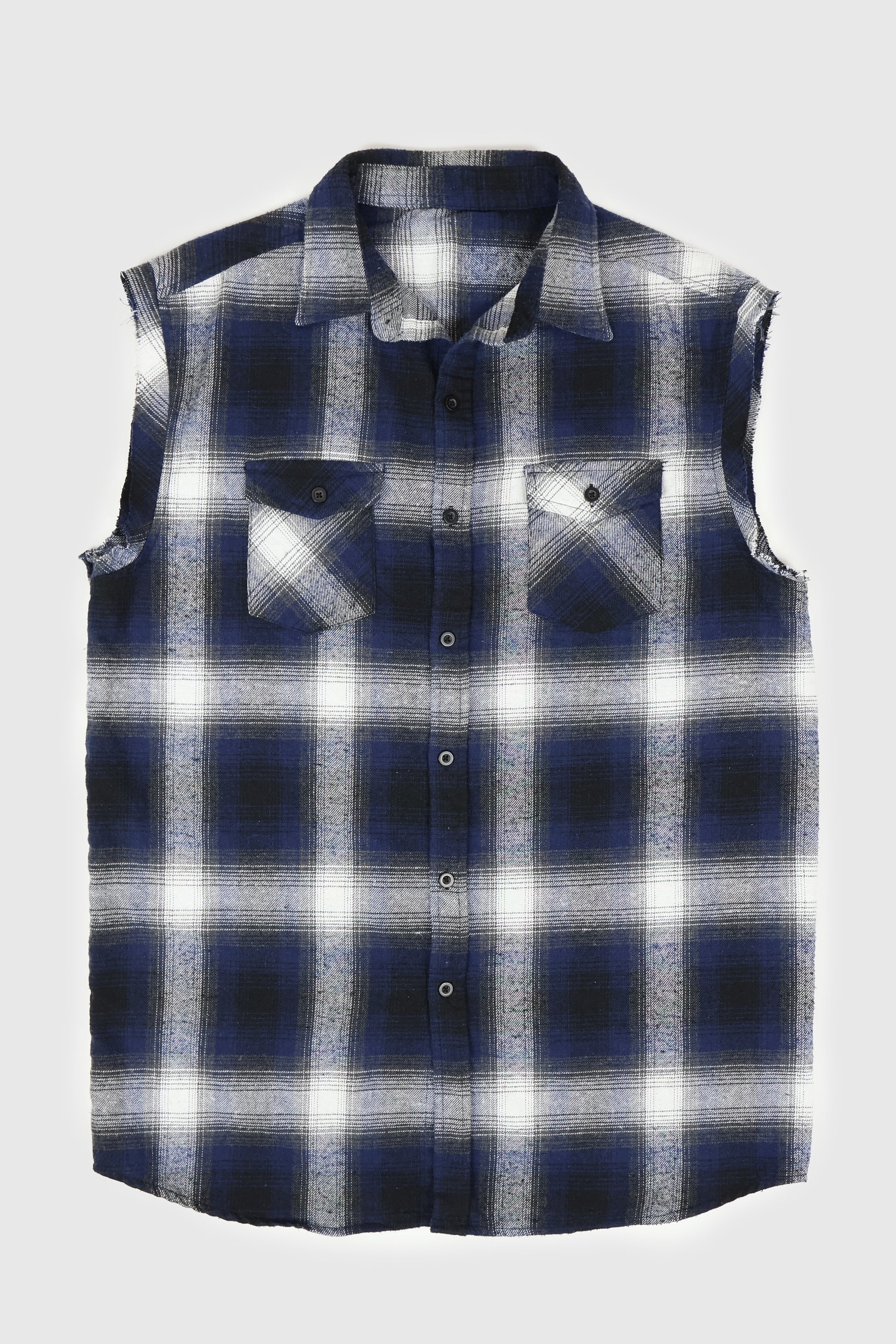 Vintage Sleeveless Flannel Button-Down Shirt
